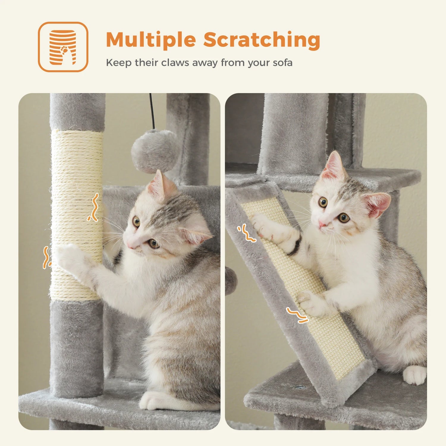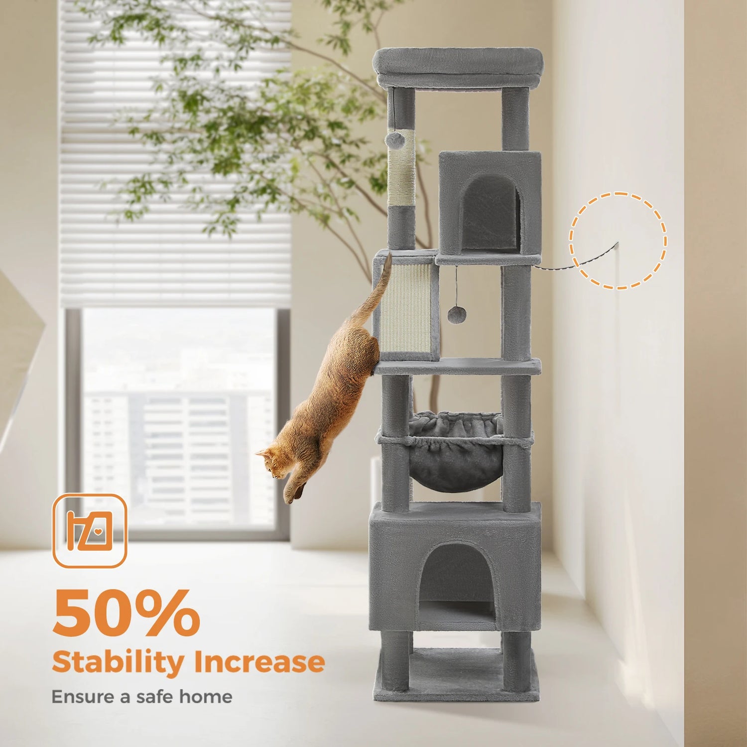 Your cat deserves a space that fits them—not one they’re forced to squeeze into. Our Tall Cat Tower for Large Cats is designed for comfort, stability, and pure feline happiness. With two oversized condos, plush beds, and multiple scratching posts, it’s a luxurious playground built to last.